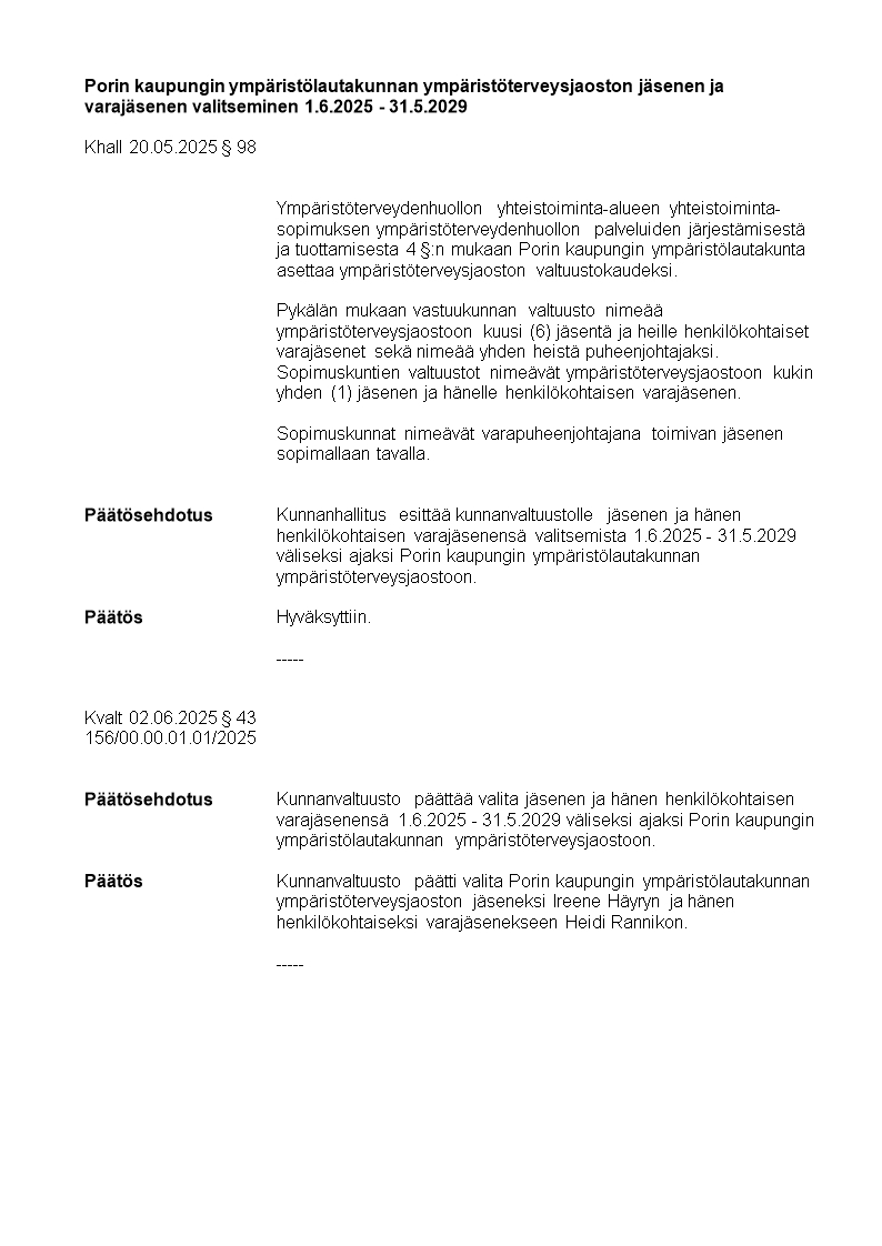 Pöytäkirja 02.06.2025/Pykälä 43