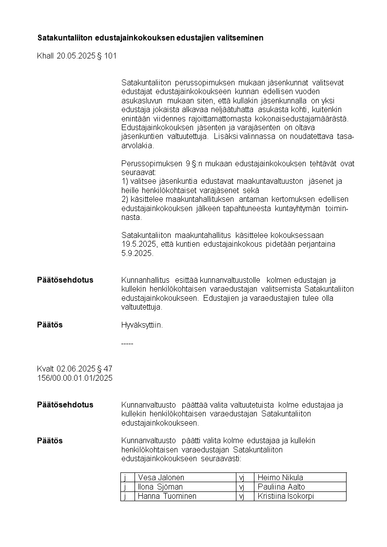 Pöytäkirja 02.06.2025/Pykälä 47
