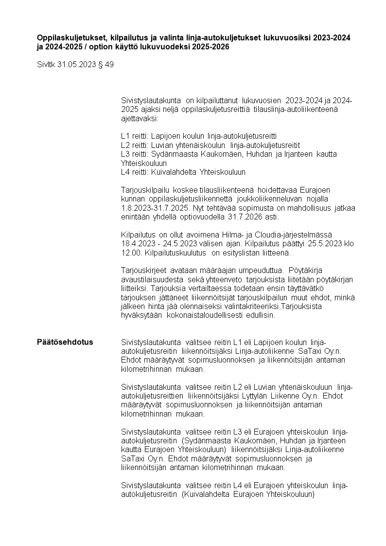 Dynasty tietopalvelu Haku RSS Eurajoen kunta
