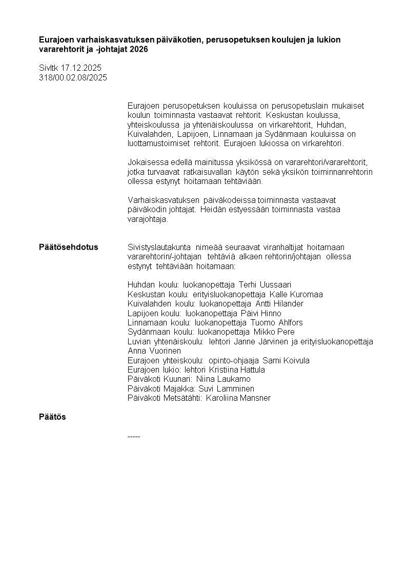 Dynasty tietopalvelu Haku RSS Eurajoen kunta
