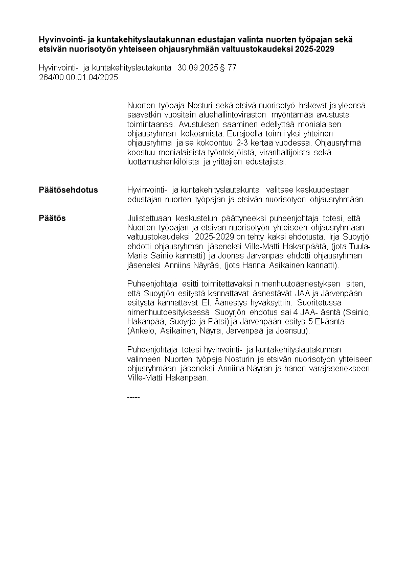 Pöytäkirja 30.09.2025/Pykälä 77