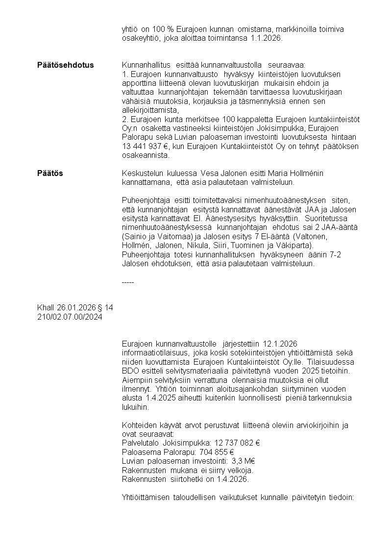 Pöytäkirja 26.01.2026/Pykälä 14