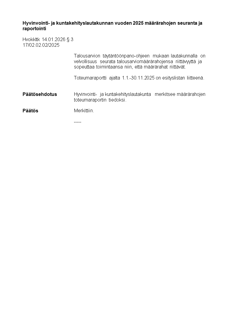 Pöytäkirja 14.01.2026/Pykälä 3