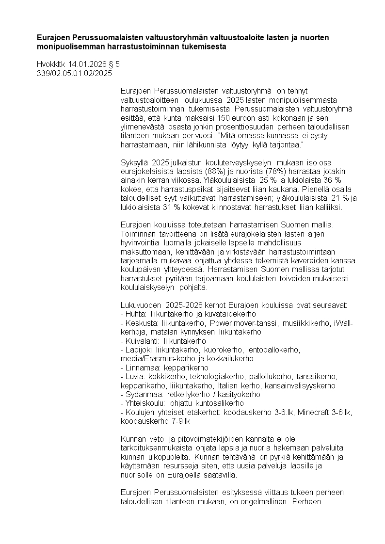 Pöytäkirja 14.01.2026/Pykälä 5