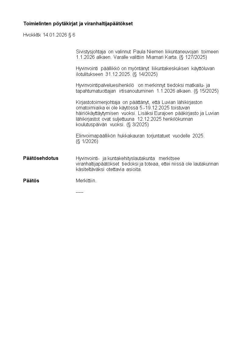 Pöytäkirja 14.01.2026/Pykälä 6