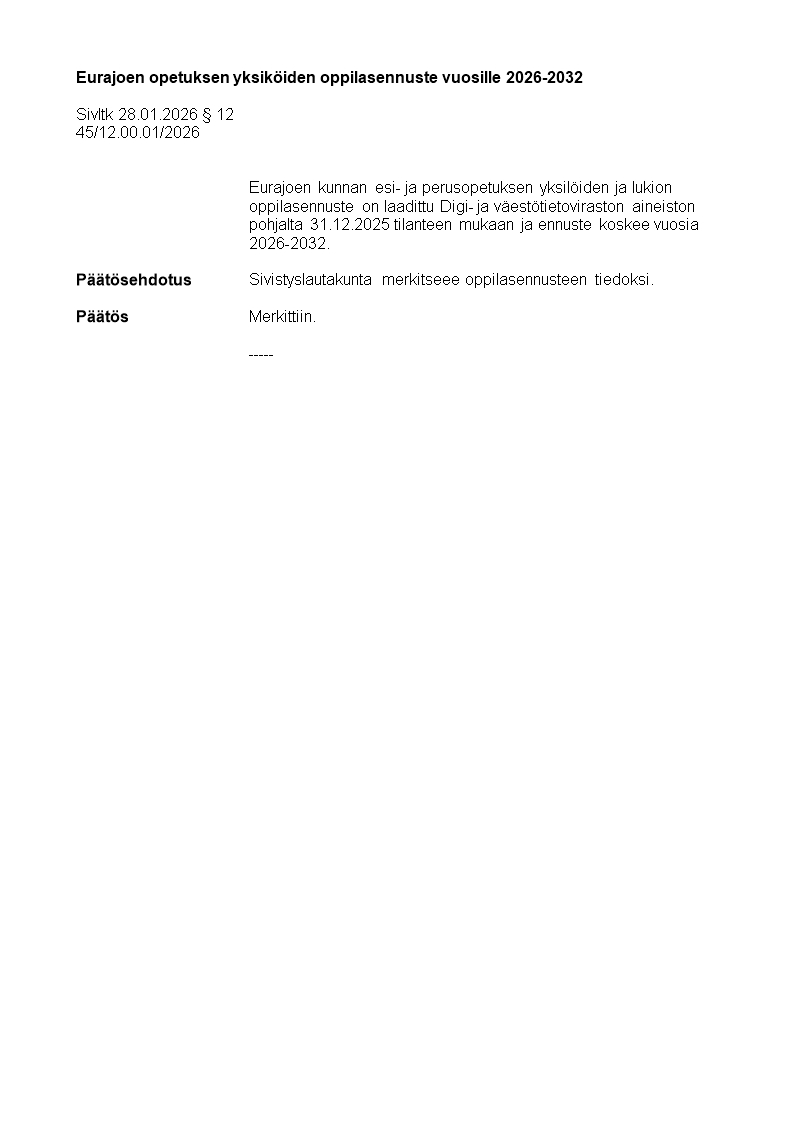 Pöytäkirja 28.01.2026/Pykälä 12