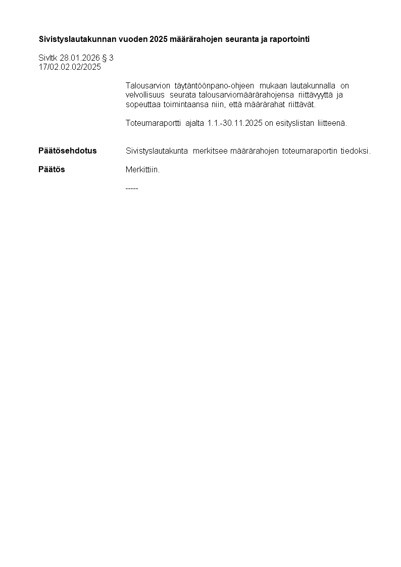 Pöytäkirja 28.01.2026/Pykälä 3