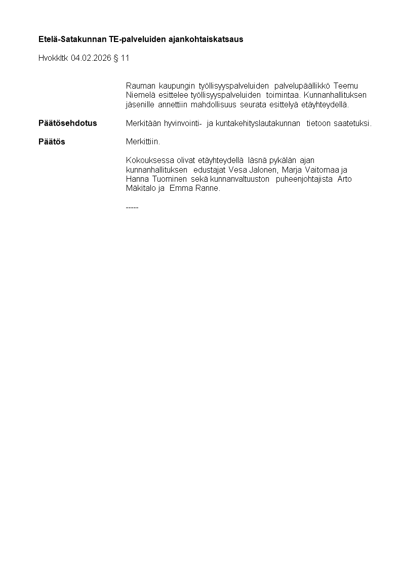Pöytäkirja 04.02.2026/Pykälä 11