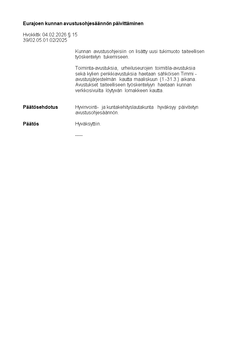 Pöytäkirja 04.02.2026/Pykälä 15