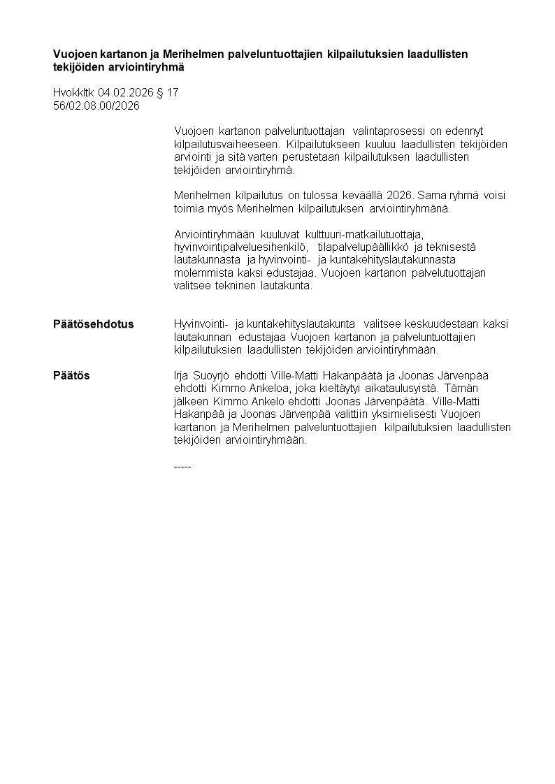 Pöytäkirja 04.02.2026/Pykälä 17