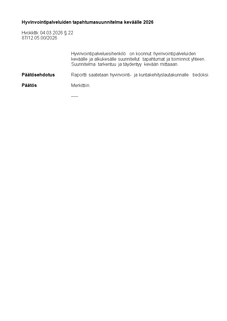 Pöytäkirja 04.03.2026/Pykälä 22