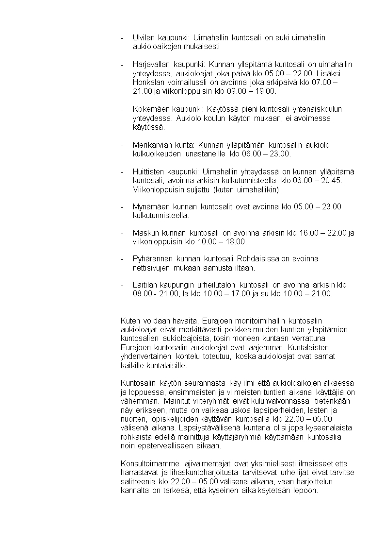 | Kuntosalikäyttäjien mielipiteitä salin aukioloajoista |