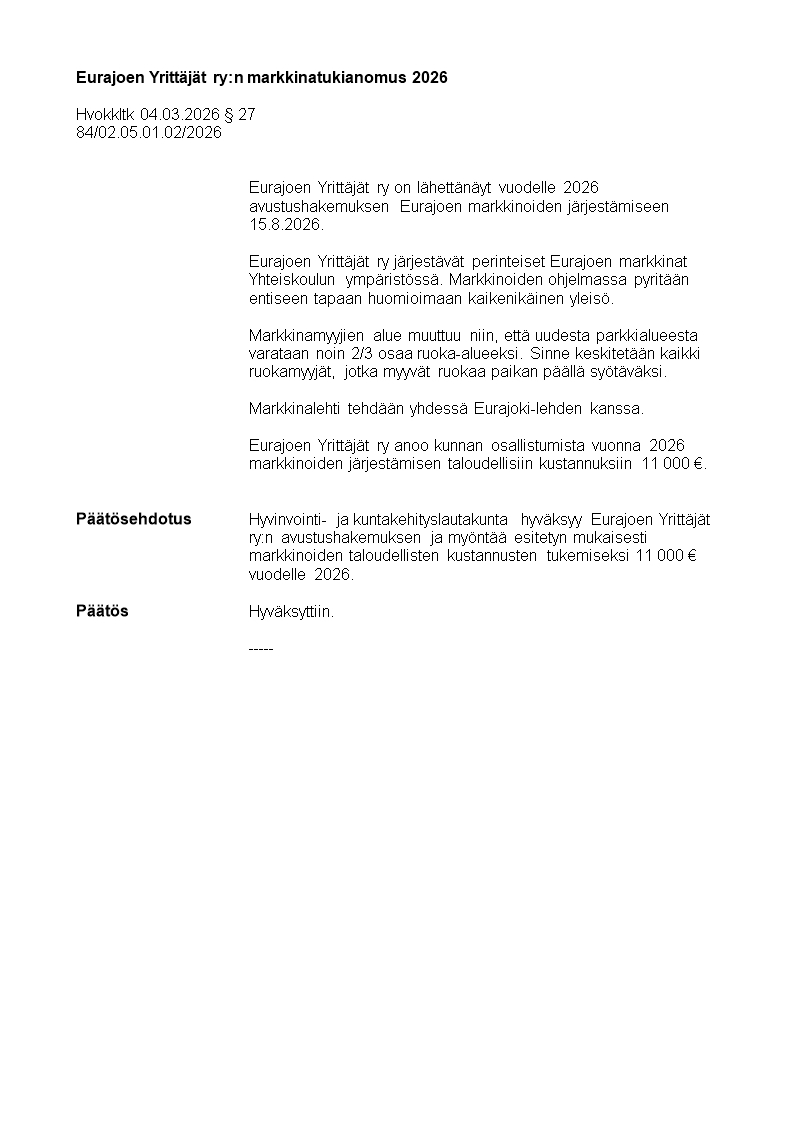 Pöytäkirja 04.03.2026/Pykälä 27